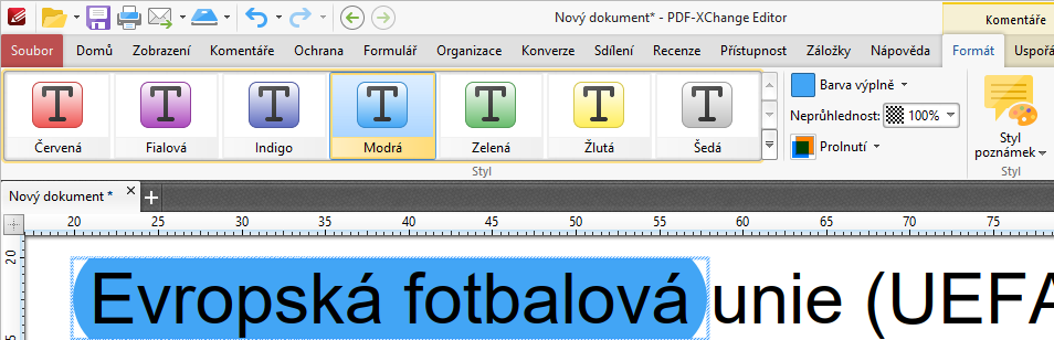 Pomocí funkce Zvýraznění textu lze barevně označit text v souboru PDF a přidat k němu krátký komentář. Tato funkce je obdobou zvýrazňovače při ručním zvýrazňování vybraného textu.