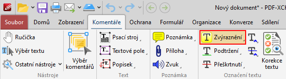 1 Na kartě Komentáře vyberte myší nástroj Zvýraznění.